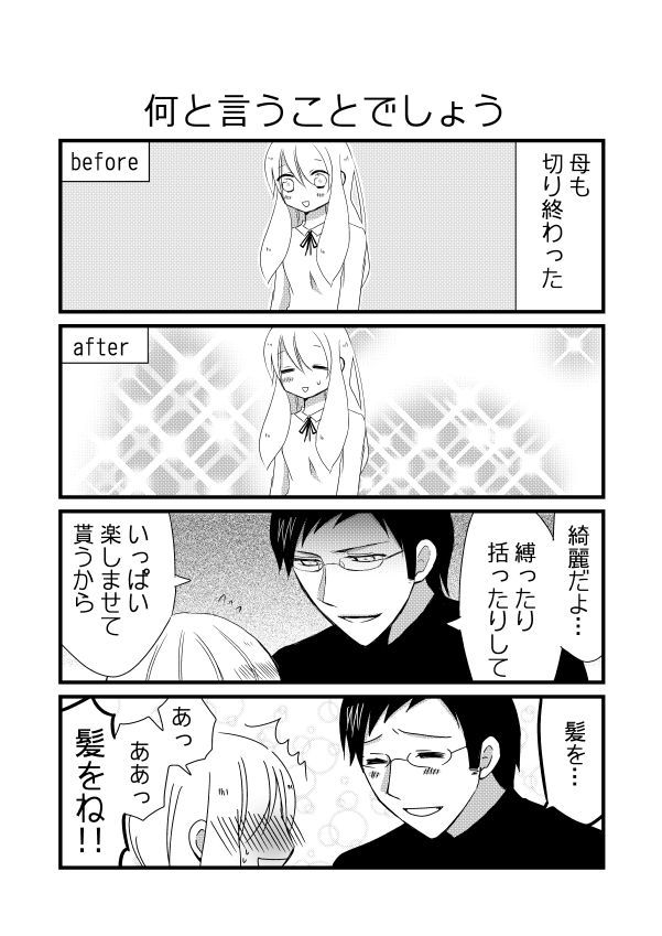 夫「何故君はそう極端なんだ!そもそも美容室に行かなければこの発色この艶枝毛の無さまとまり感云々ベラベラベラ!!わかった?」