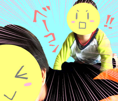兄弟が戦いごっこしていました…