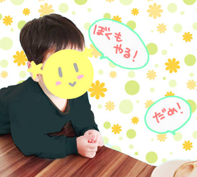 直立不動で「いや!ぼくする!」って言う次男( ー`дー´)キリッ